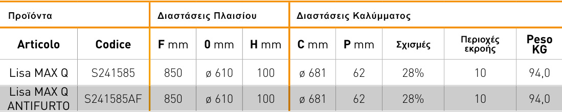 Ελατός Χυτοσίδηρος GJS 500-7 σύμφωνα με το πρότυπο EN 1563 που τροποποιήθηκε με το EN 124-2 : 2015 πρότυπο αναφερόμενο στην E600 Κλάση (αντοχή 60 tn)