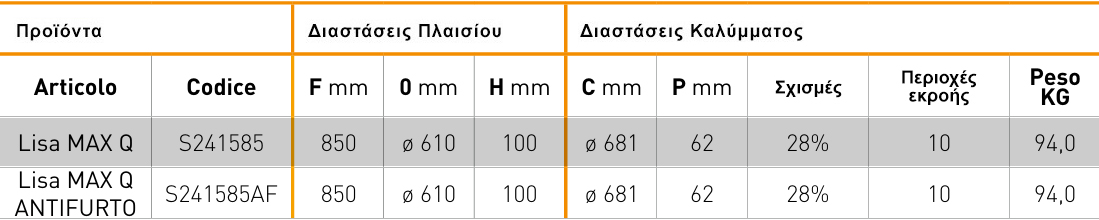 Ελατός Χυτοσίδηρος GJS 500-7 σύμφωνα με το πρότυπο EN 1563 που τροποποιήθηκε με το EN 124-2 : 2015 πρότυπο αναφερόμενο στην E600 Κλάση (αντοχή 60 tn)