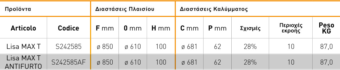 Ελατός Χυτοσίδηρος GJS 500-7 σύμφωνα με το πρότυπο EN 1563 που τροποποιήθηκε με το EN 124-2 : 2015 πρότυπο αναφερόμενο στην E600 Κλάση (αντοχή 60 tn)