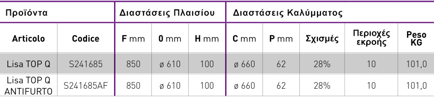 Ελατός Χυτοσίδηρος GJS 500-7 σύμφωνα με το πρότυπο EN 1563 που τροποποιήθηκε με το EN 124-2 : 2015 πρότυπο αναφερόμενο στην F900 Κλάση (αντοχή 90 tn)