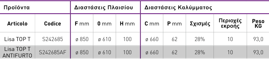 Ελατός Χυτοσίδηρος GJS 500-7 σύμφωνα με το πρότυπο EN 1563 που τροποποιήθηκε με το EN 124-2 : 2015 πρότυπο αναφερόμενο στην F900 Κλάση (αντοχή 90 tn)