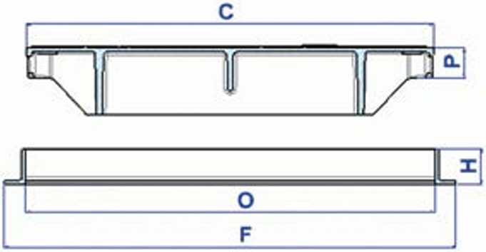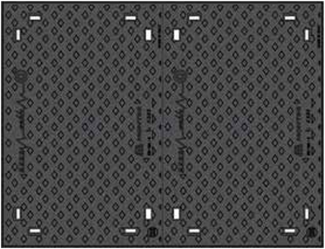 Πλαίσιο και Κάλυμμα φρεατίου από ελατό χυτοσίδηρο GJS 500-7 σύμφωνα με το πρότυπο EN 1563, συμβατό με το πρότυπο EN124-2:2015, κατηγορία φορτίου D400, φορτίο αντοχής >250 kN (25 t), με πιστοποίηση προϊόντος IGQ (Ιταλικό Ινστιτούτο Διασφάλισης Ποιότητας) και το σήμα συμμόρφωσης UNI.