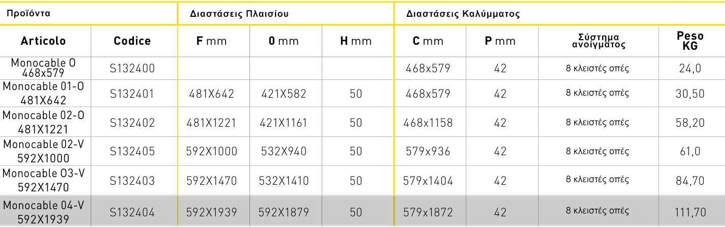Εσωτερική διάσταση Πλαισίου (Ο)¨: 532X1879mm