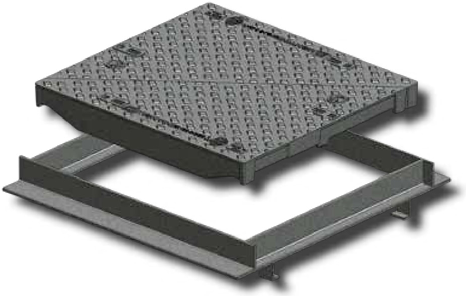 Σέτ Καλύμματος φρεατίου από ελατό χυτοσίδηρο GJS 500-7 σύμφωνα με το πρότυπο EN 1563, συμβατό με το πρότυπο EN124-2:2015, κατηγορία φορτίου D400, φορτίο αντοχής >400 kN (40 t), με πιστοποίηση προϊόντος IGQ (Ιταλικό Ινστιτούτο Διασφάλισης Ποιότητας) και το σήμα συμμόρφωσης UNI.