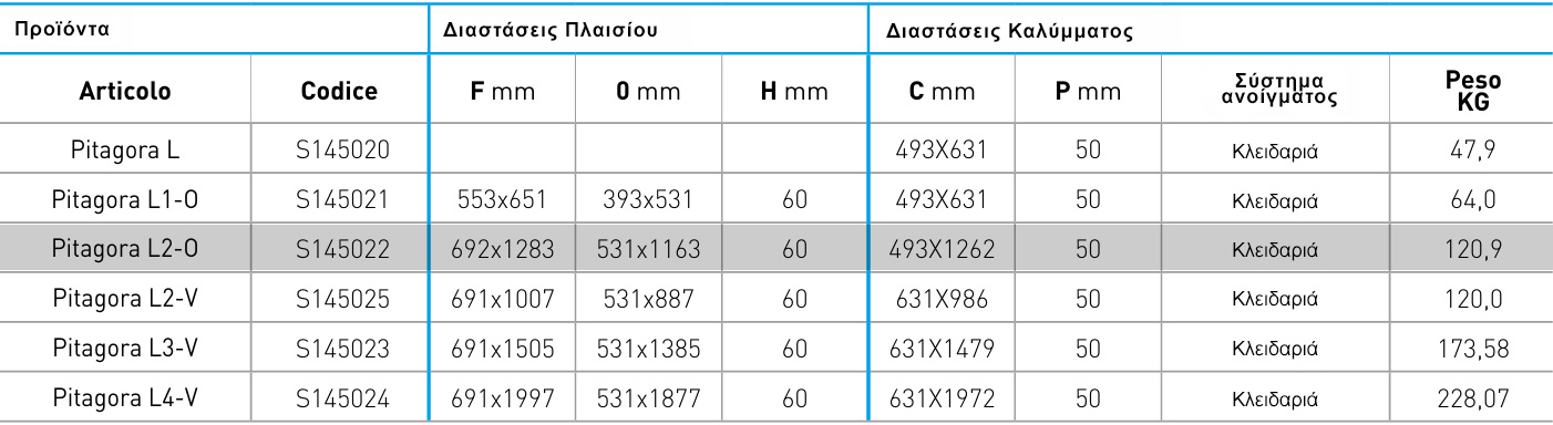 Εξωτερική διάσταση Πλαισίου (F): 692Χ1283mm
