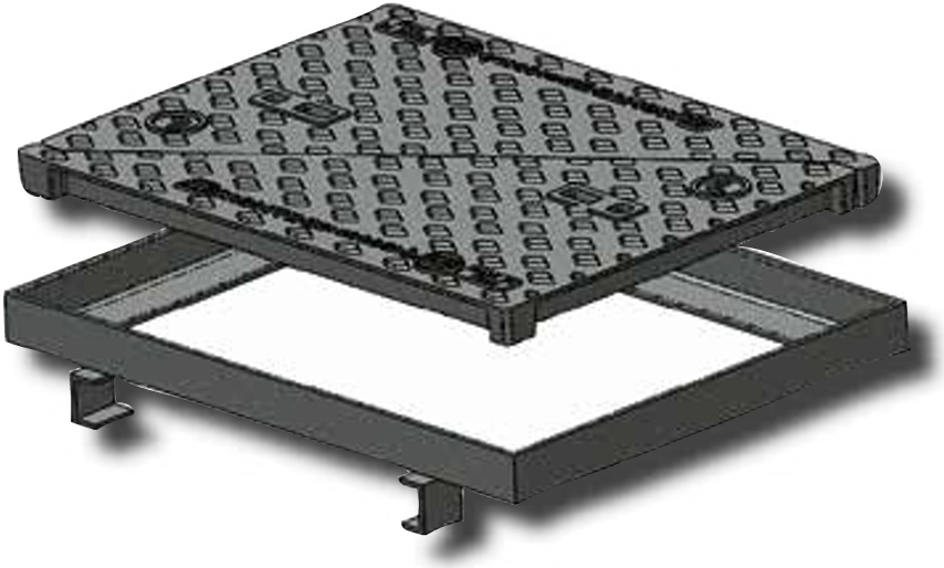 Σέτ Καλύμματος φρεατίου από ελατό χυτοσίδηρο GJS 500-7 σύμφωνα με το πρότυπο EN 1563, συμβατό με το πρότυπο EN124-2:2015, κατηγορία φορτίου D400, φορτίο αντοχής >400 kN (40 t), με πιστοποίηση προϊόντος IGQ (Ιταλικό Ινστιτούτο Διασφάλισης Ποιότητας) και το σήμα συμμόρφωσης UNI.