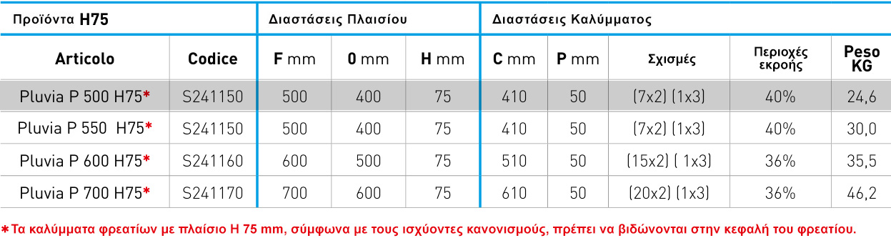 Το πλαίσιο είναι ενισχυμένο με νευρώσεις και διαθέτει γωνιακές σχισμές για τη στερέωσή του στο φρεάτιο.