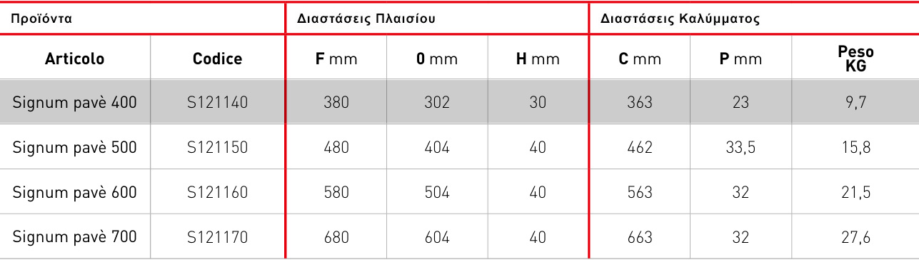 Λείο εξωτερικό προφίλ πλαισίου για εγκατάσταση σε τύπους πλακόστρωσης.
