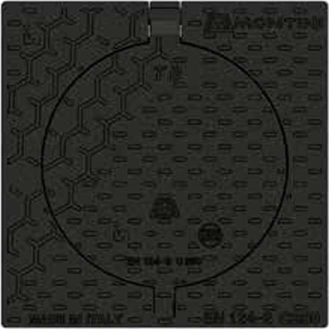 Σέτ στεγανού Καλύμματος φρεατίου από ελατό χυτοσίδηρο GJS 500-7 σύμφωνα με το πρότυπο EN 1563, συμβατό με το πρότυπο EN124-2:2015, κατηγορία φορτίου C250, φορτίο αντοχής >250 kN (25 t), με πιστοποίηση προϊόντος IGQ (Ιταλικό Ινστιτούτο Διασφάλισης Ποιότητας) και το σήμα συμμόρφωσης UNI.